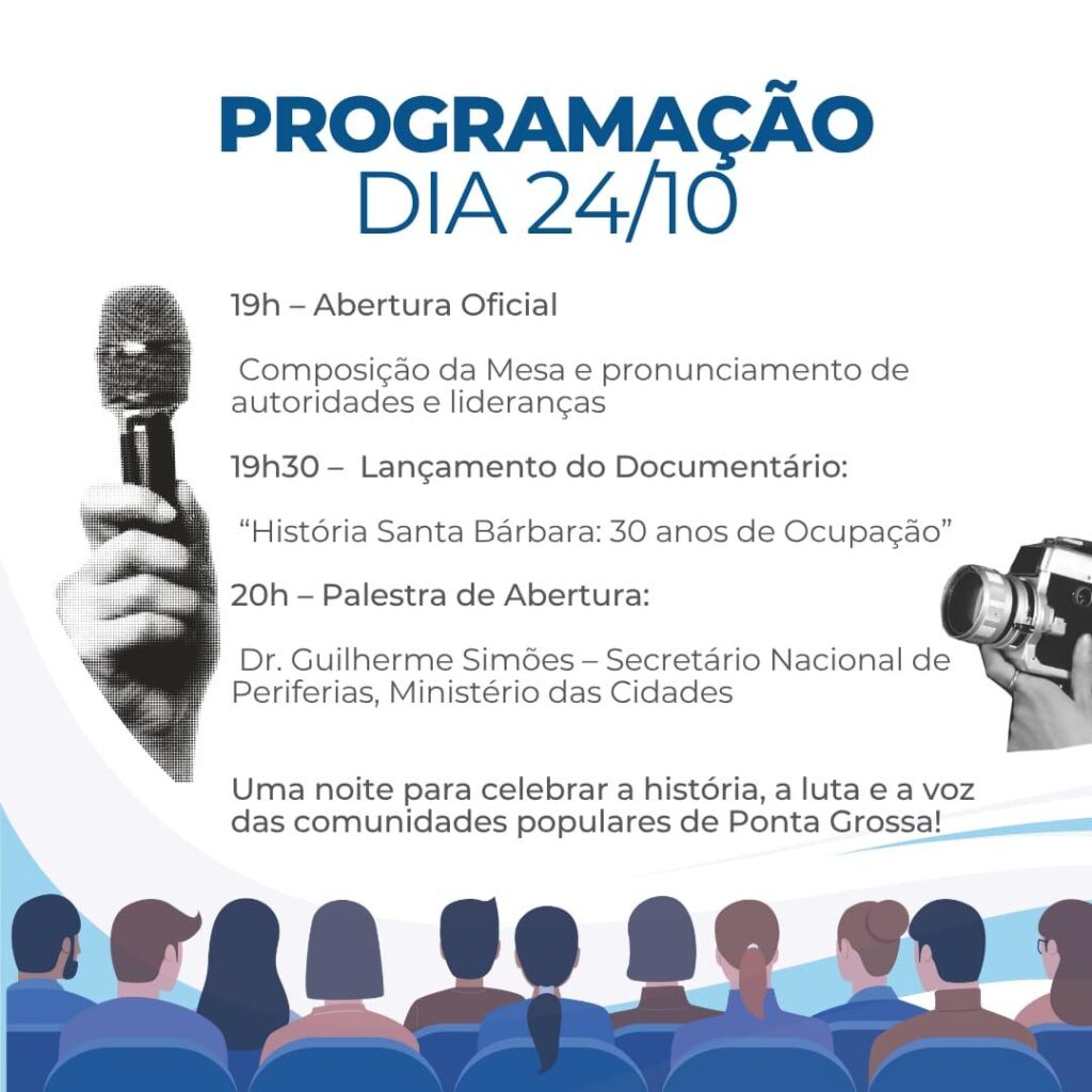 O evento tem como objetivo fortalecer o diálogo entre as comunidades e o poder público, discutindo prioridades e políticas voltadas à moradia, juventude, cultura, renda, educação e meio ambiente. A programação inclui palestras, apresentações culturais, mesas temáticas e o lançamento do documentário “História Santa Bárbara: 30 anos de Ocupação”.