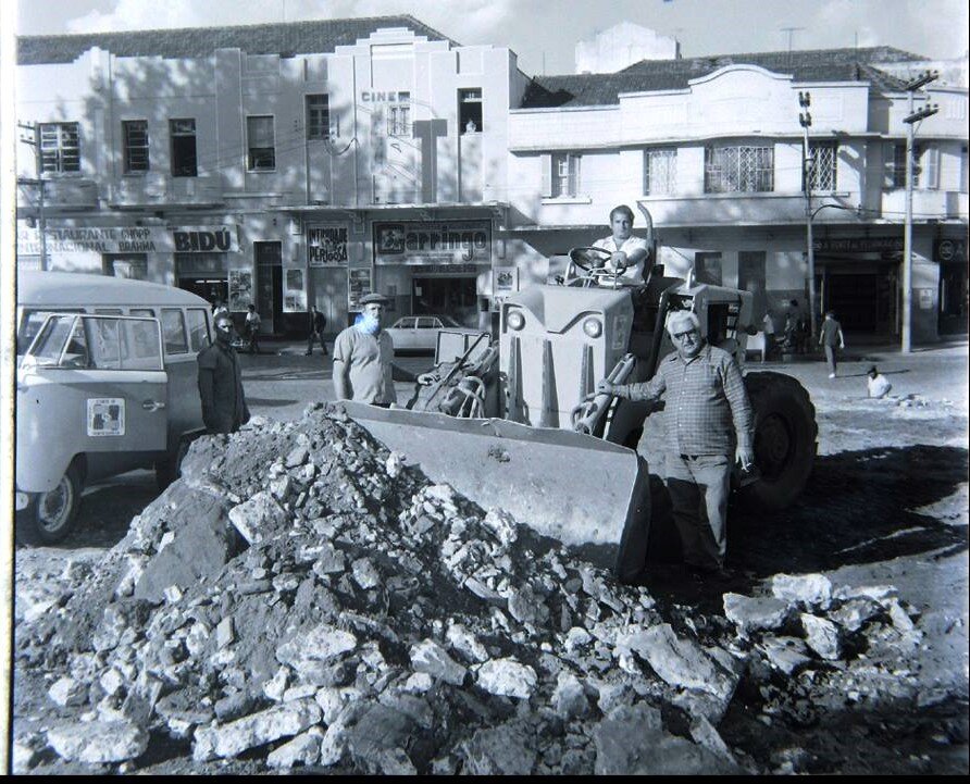 Pertencente ao acervo de Osmario Souza Ribas, o registro mostra a fase final de demolição do antigo ‘Ponto Azul’, na praça Barão do Rio Branco, na década de 1970. O local ficou popularmente conhecido como o primeiro ‘terminal’ de passageiros do transporte coletivo em Ponta Grossa.