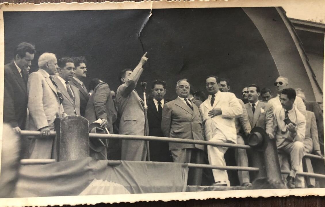 A foto, pertencente ao acervo de Elysio Alves de Oliveira, foi gentilmente cedida por seu neto, Bruno Felipe Santos, ao acervo do Ponta Grossa Histórica. Ela mostra uma visita de Getúlio Vargas a Ponta Grossa em 18 de setembro de 1950.