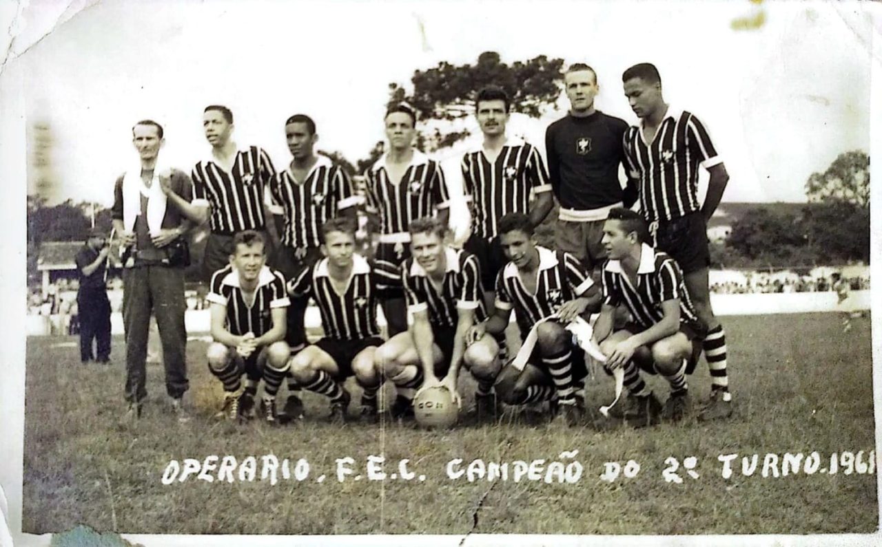 Do acervo de Luiz Puchta, a fotografia mostra o elenco do Operário Ferroviário campeão da fase ‘Sul’ do Campeonato Paranaense de 1961, decidido em campo e também fora dele. Até os dias atuais, aquela é uma das edições mais ‘confusas’ da história do estadual.
