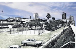 Do acervo de Carlos Sviatowski, o registro mostra a tradicional praça João Pessoa, nas imediações da Estação Saudade, em algum momento do fim da década de 1960. Naquela época, o local tinha uma quadra de modalidades esportivas, como é possível observar na imagem.