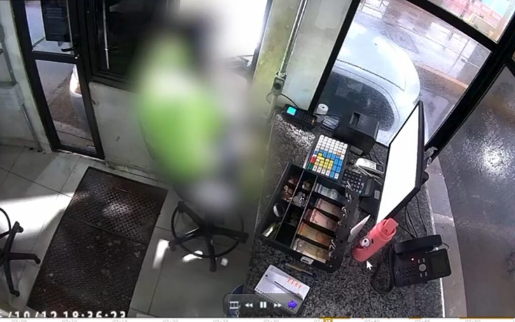 A câmera de segurança dentro da cabine do pedágio registrou o momento em que a funcionária sofreu o assédio: