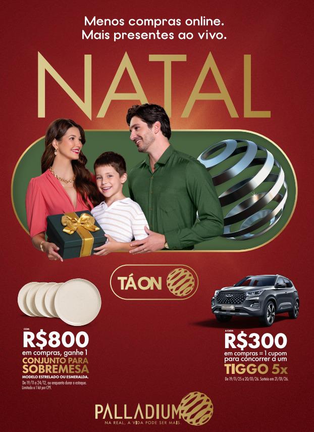O clima de Natal já tomou conta do Palladium Ponta Grossa e, este ano, além de encantamento, a data vem cheia de oportunidades para quem gosta de presentear ao vivo. A partir do dia 19 de novembro, o shopping dá início à campanha “Natal Tá On Palladium”, que traz como mote “Menos compras online. Mais presentes ao vivo.”, incentivando o encontro, o consumo consciente e a valorização do comércio local.