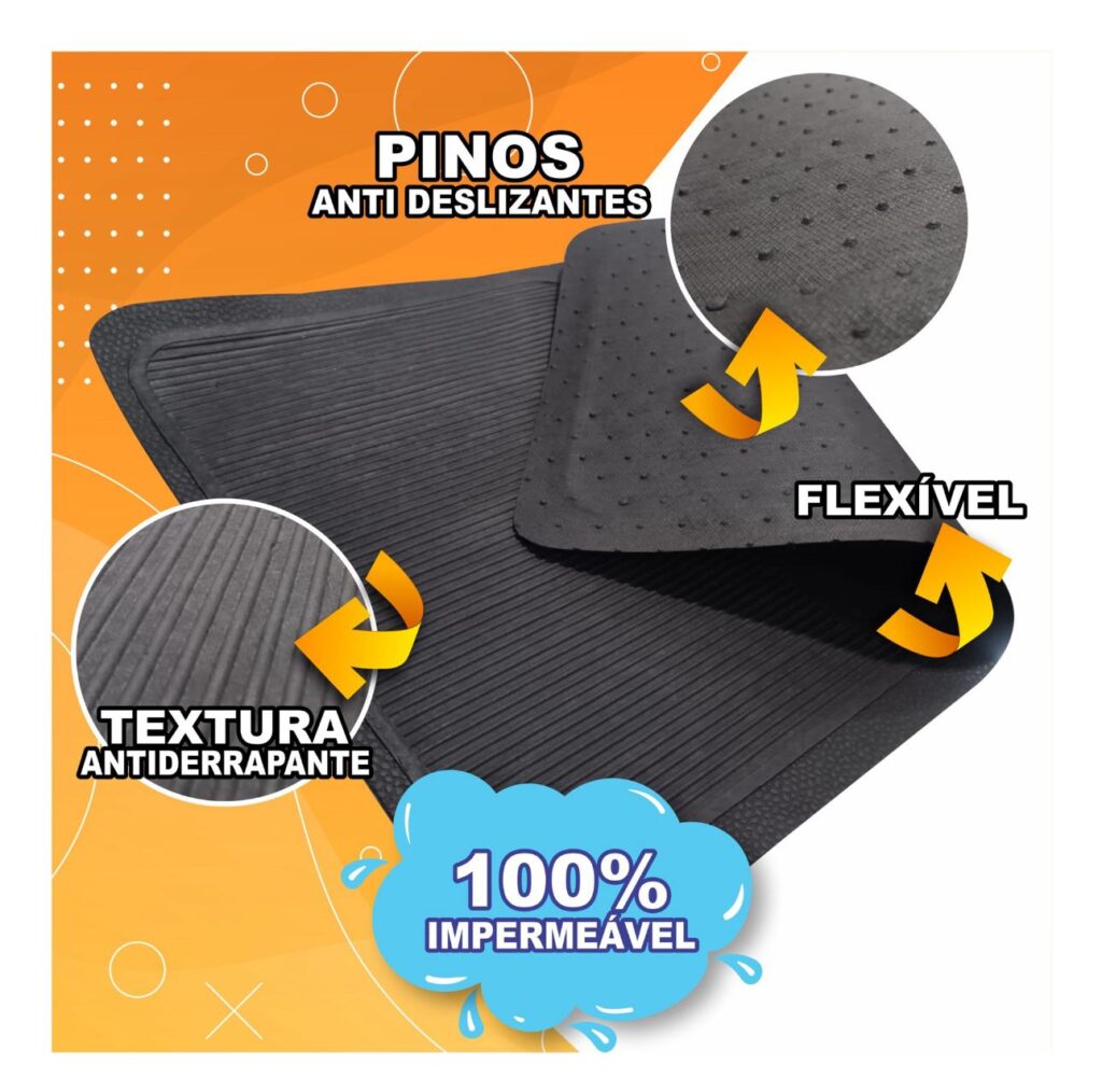 Com alta durabilidade, conforto e sofisticação, os tapetes são feitos em PVC premium e possuem pinos antiderrapantes, garantindo máxima segurança.
