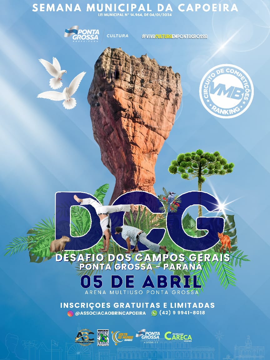 A Prefeitura de Ponta Grossa, por meio da Secretaria Municipal de Cultura e Secretaria Municipal de Esportes, em parceria com a Associação Brincapoeira, realiza, a partir de hoje (terça-feira, dia 1º) até o dia 7 deste mês, a segunda edição da Semana Municipal da Capoeira.