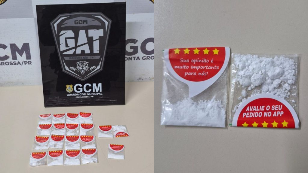 Ainda conforme a GCM, os invólucros da substância tinham etiquetas com a mensagem “Avalie seu pedido no app. Sua opinião é muito importante”, o que chamou a atenção dos agentes.
