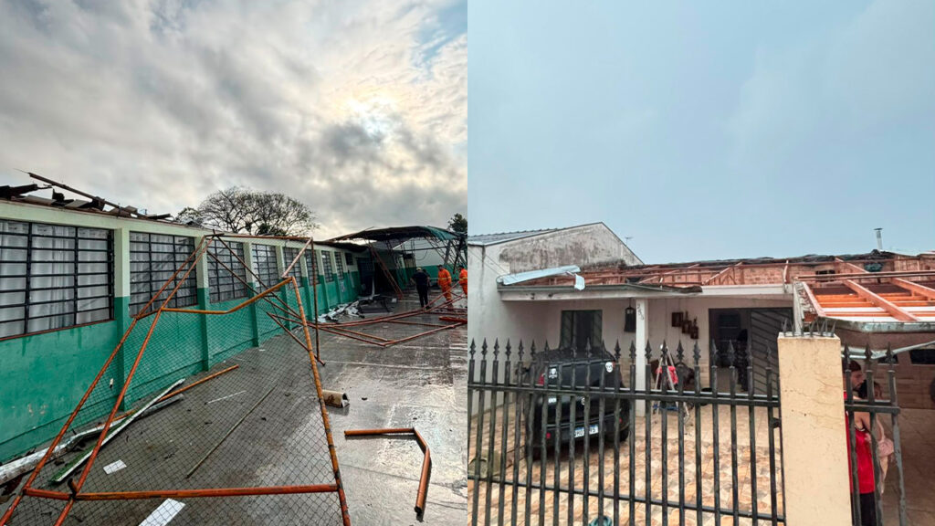 Além dos destelhamentos, também foram registradas quedas de árvores e mais de 30 cruzamentos semaforizados ficaram inoperantes.